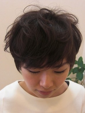トップに動きをつけたショートスタイルです。