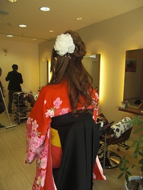 卒業式にピッタリな袴の着付け& ハーフアップのセットスタイルです。 作りこみすぎず、でも特別な日を 華やかに演出してくれるスタイルです。